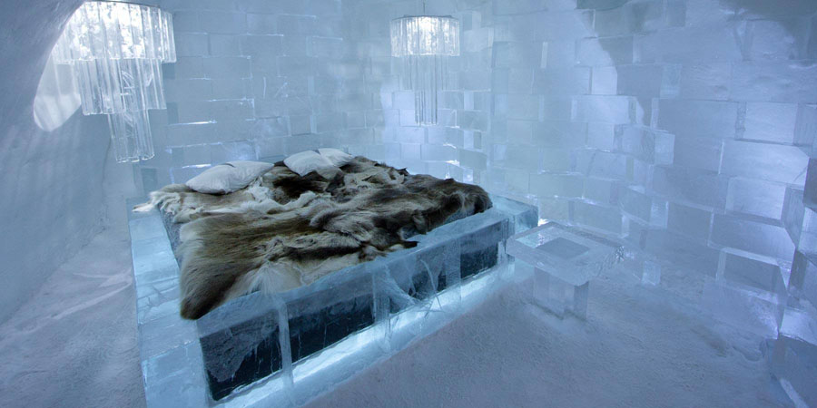Vous avez toujours rêvé de dormir dans une chambre de glace ? C’est possible à l’ICEhotel ! Une partie de l’hôtel est reconstruite chaque année avec la glace de la rivière Torne. Les sculptures de glace sont réalisées par des artistes du monde entier.