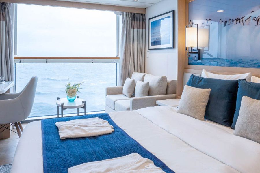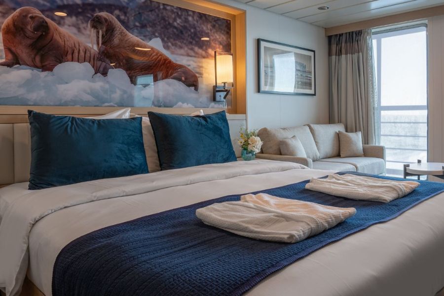 Le tout nouveau navire Ocean Albatros est un véritable joyau. Les 95 cabines et suites confortables offrent toutes une vue imprenable sur la mer et la plupart disposent d’un balcon privé. Il y a deux restaurants, la possibilité de dîner sur la terrasse extérieure et un bar Albatros Nordic. Vous trouverez également de nombreuses installations modernes, notamment un espace bien-être avec sauna panoramique et une salle de conférence moderne.