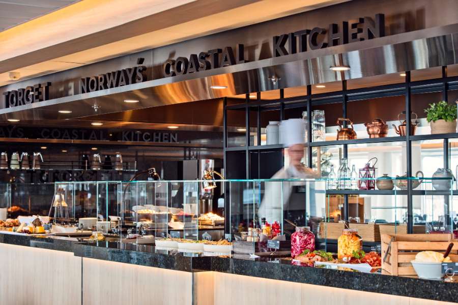 À bord, vous trouverez pas moins de quatre restaurants. Le Torget, très varié, propose un buffet ou un menu du jour préparé à partir d’ingrédients locaux norvégiens. Brygga est parfait si vous avez envie d’un hamburger, d’une pizza ou d’une salade avec une ‘touche nordique’. De la gastronomie haut de gamme est également possible sur le MS Nordnorge. Des chefs travailleront à la carte pour vous dans l’élégant restaurant Kysten. Un sandwich savoureux, une pâtisserie ou une gaufre ? Vous les trouverez à la boulangerie Multe. Pour un cocktail, installez-vous à l’Explorer Lounge & Bar.